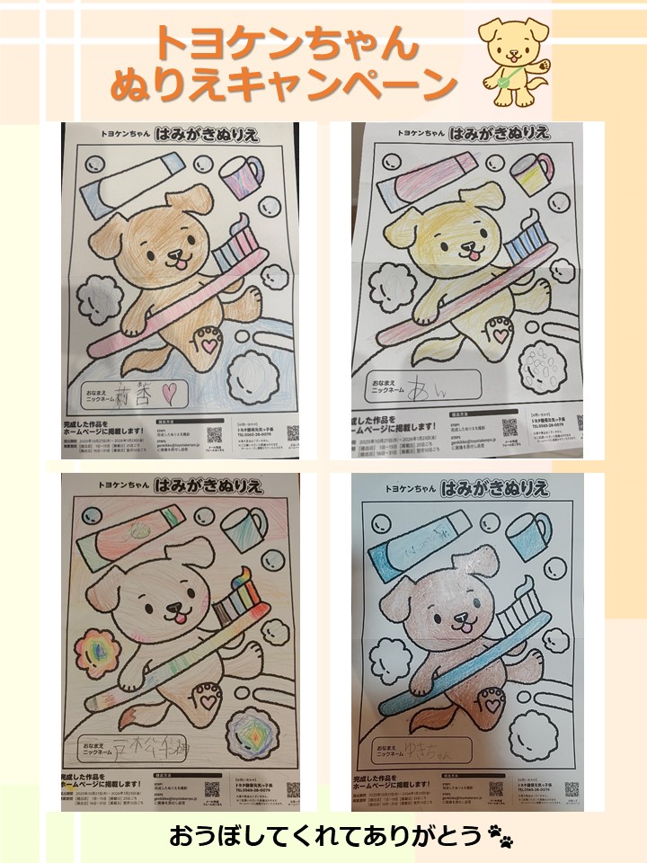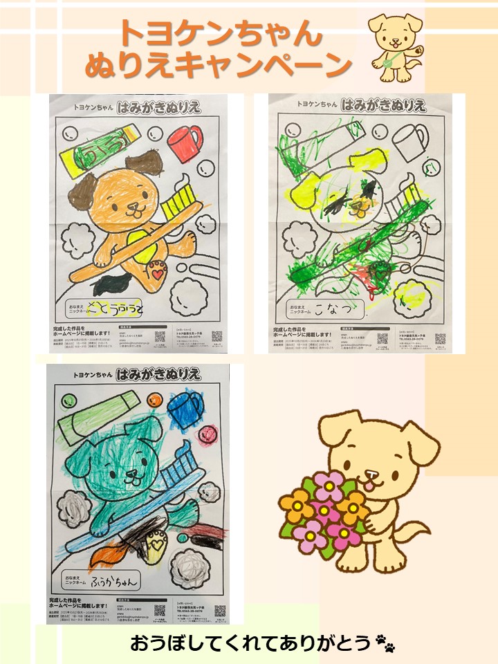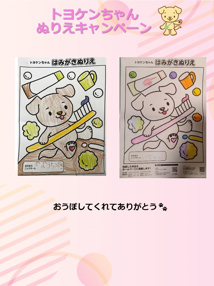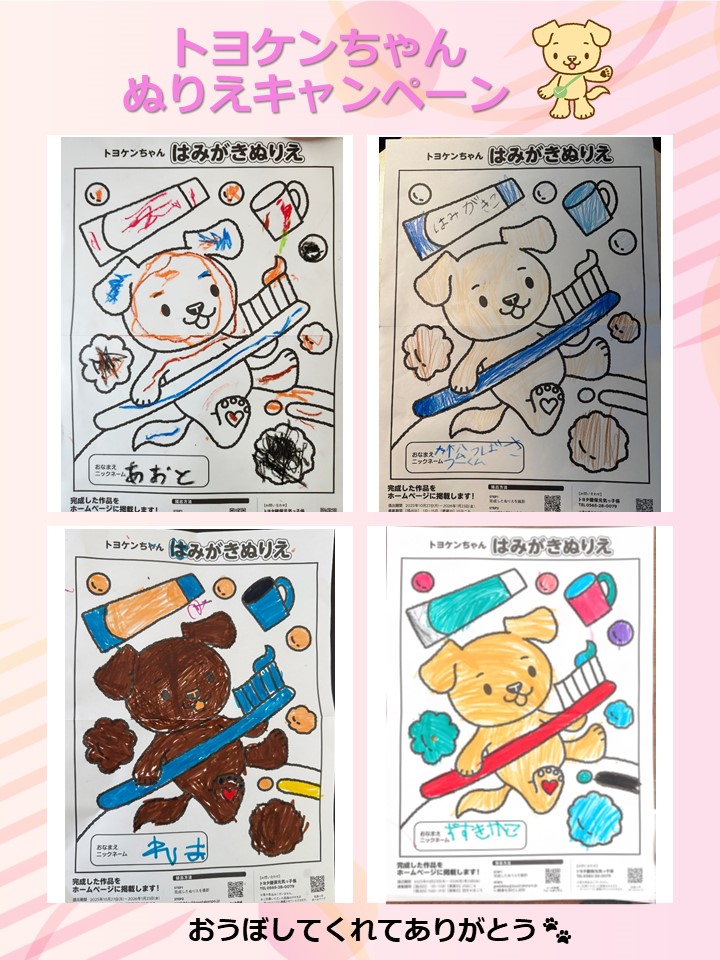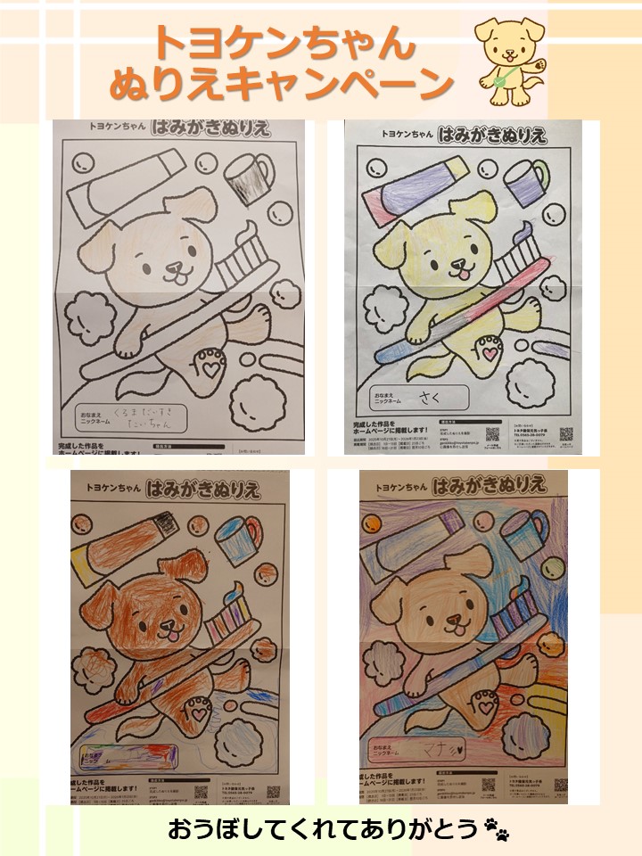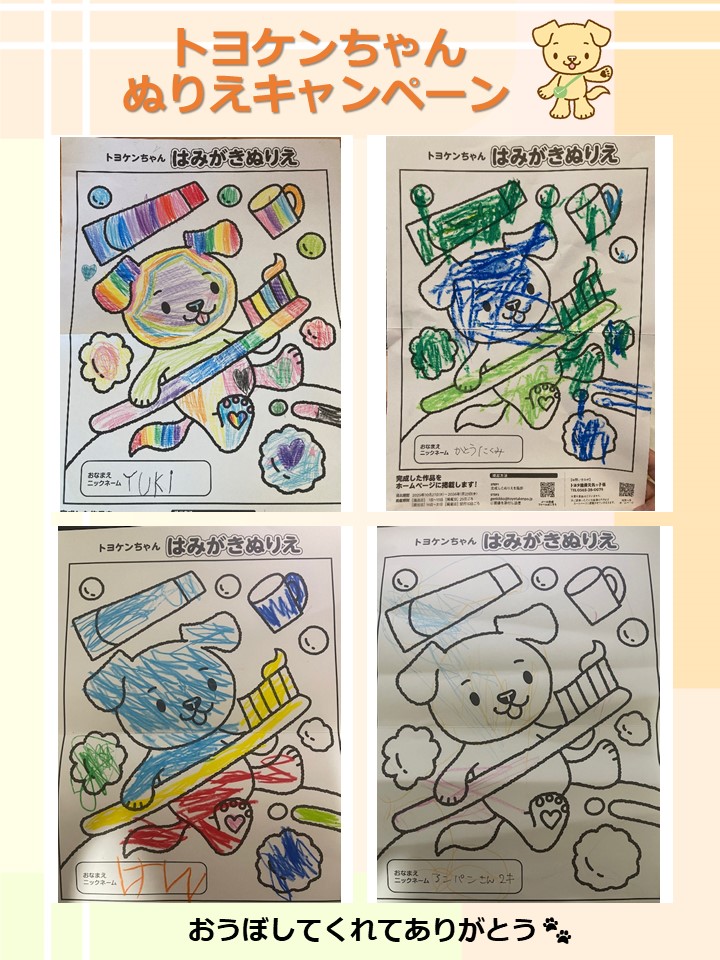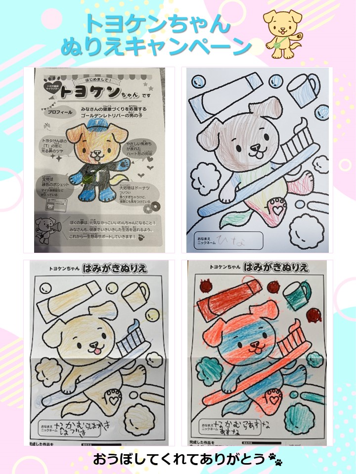 元気っ子キャンペーンにてご案内いたしました「トヨケンちゃんぬりえキャンペーン」へのご応募、 誠にありがとうございました! ご応募いただいた作品を掲載させていただきます。たくさんの素敵な作品をありがとうございます♪