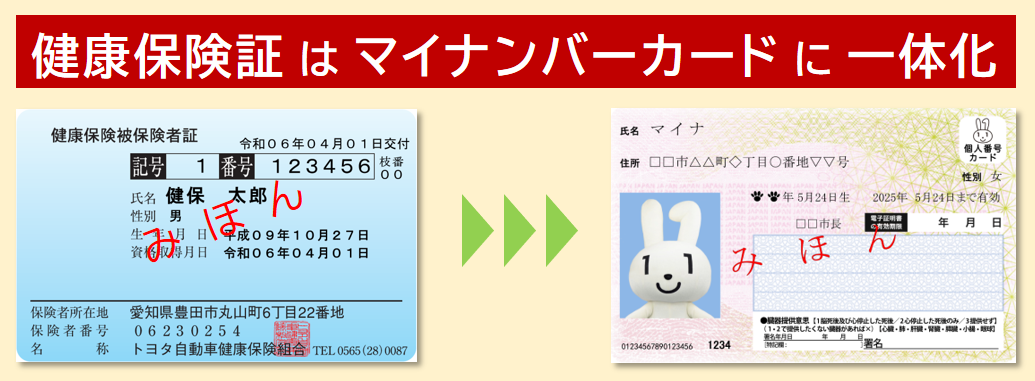 2025年12月1日に従来の健康保険証は廃止され、マイナ保険証を基本とする仕組みに移行されました。 ・従来の健康保険証は、トヨタ健保および職場への返却不要です。 ・お手元に従来の健康保険証がある場合、ご自身で細断し破棄してください。 ※紛失された場合も、ご連絡、手続き等は不要です。
