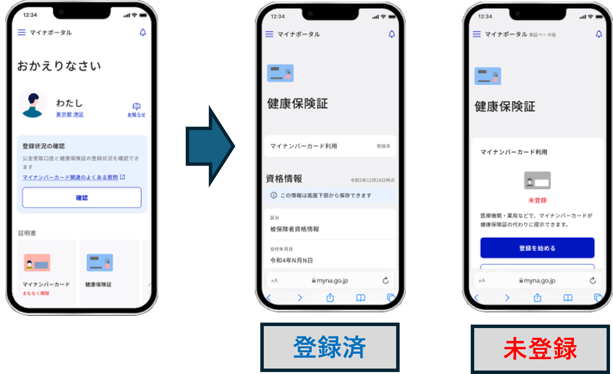利用登録状況は、マイナポータルで確認できます。未登録の場合は、マイナポータルから申請できます。