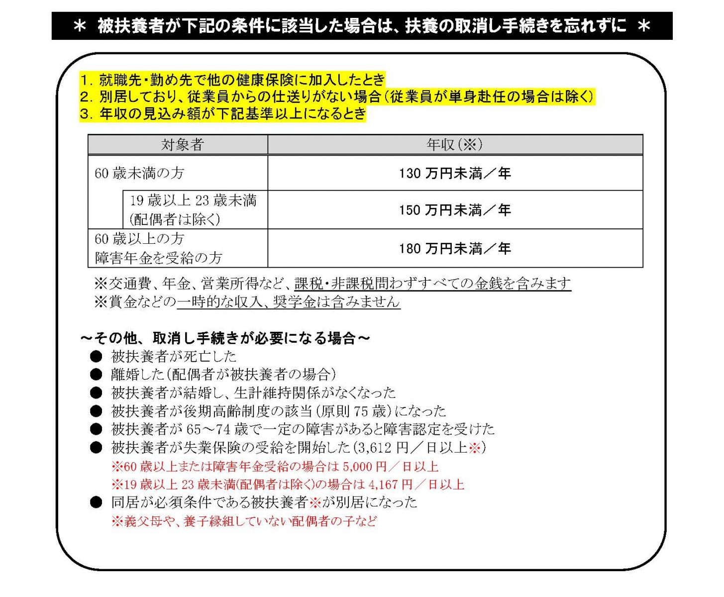 被扶養者の条件に該当しなくなる場合 |