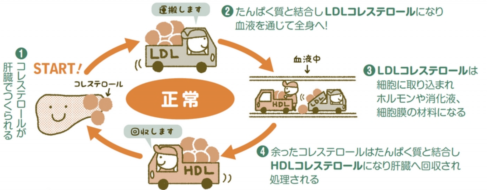 LDLコレステロールは肝臓から全身の細胞にコレステロールを運ぶ役割を担っています。