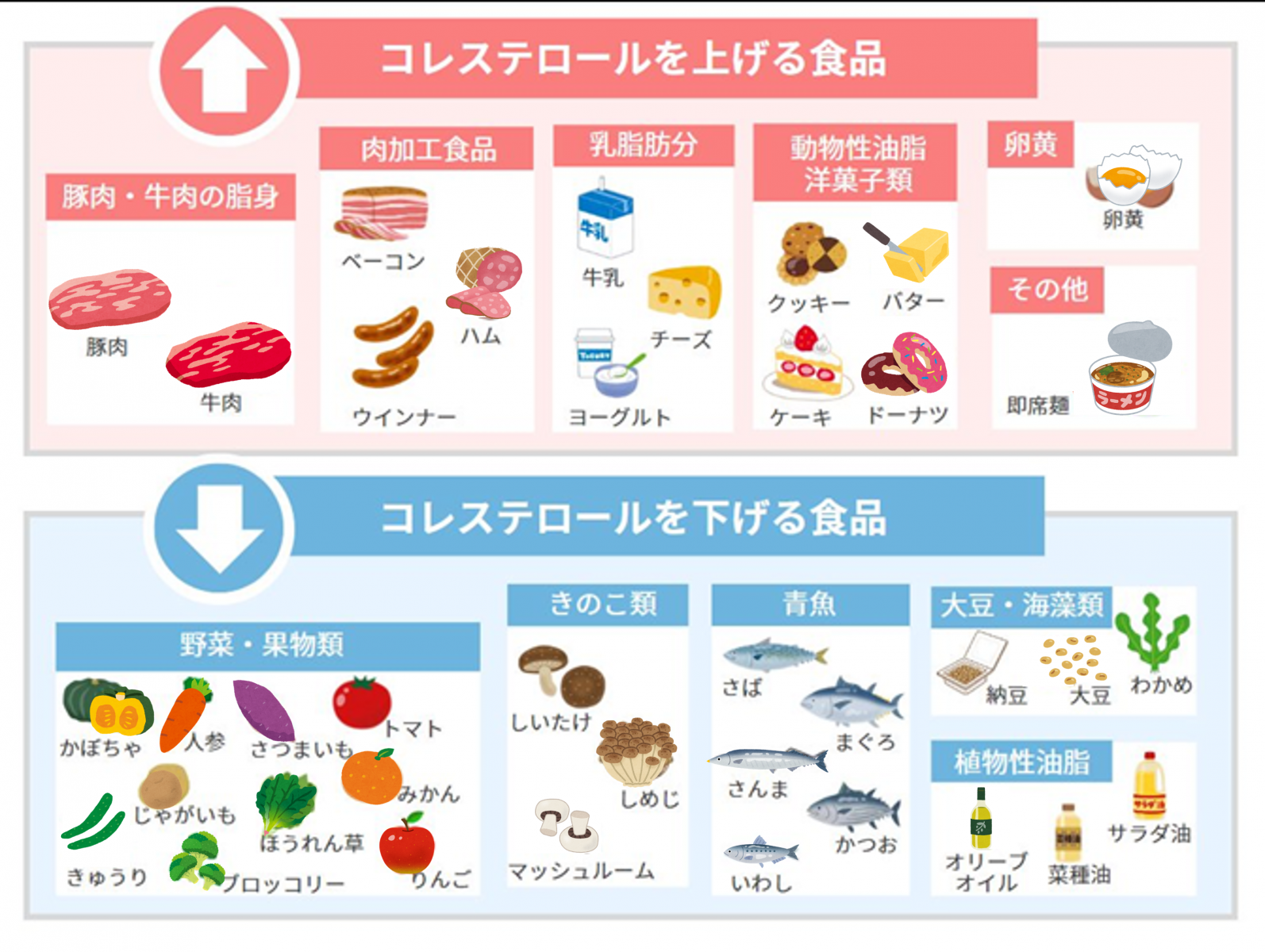 卵類、肉類、魚類の内臓などはコレステロールを多く含みますので、過剰摂取を避けましょう。