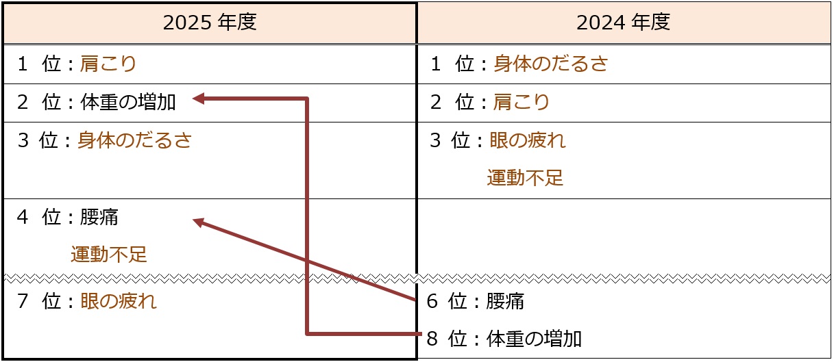 ▼2024年度1~3位の健康課題(※身体)の改善状況